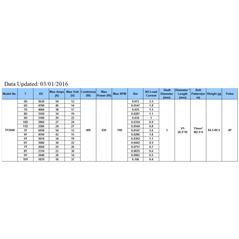 TP Power motors are made of the best materials that are available, and have high efficiencies (>90%) required for the most demanding applications.  Please refer to the popup chart for available models and detailed parameters. All of the motors under the "built your own" catalog are made on order, and the delivery time is about 4-6 weeks.
