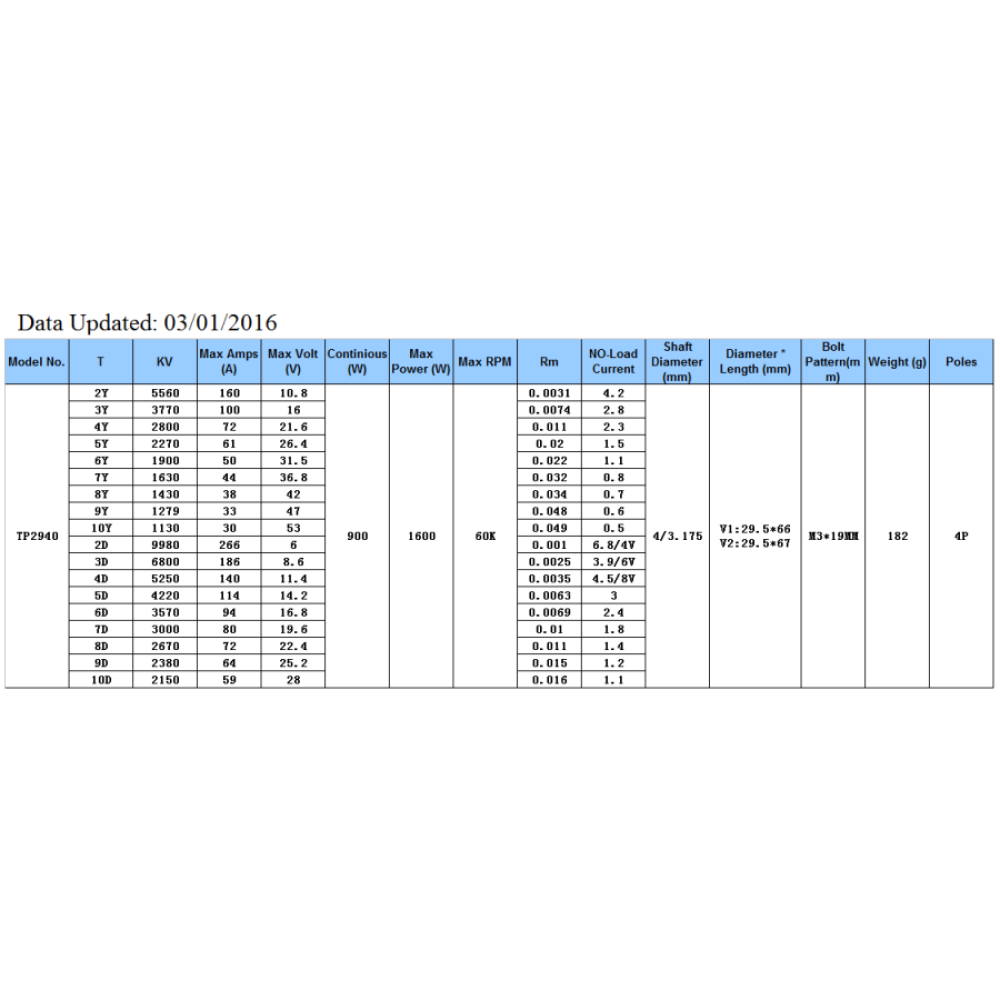 TP Power motors are made of the best materials that are available, and have high efficiencies (>90%) required for the most demanding applications. Please refer to the popup chart for available models and detailed parameters. All of the motors under the "built your own" catalog are made on order, and the delivery time is about 4-6 weeks.