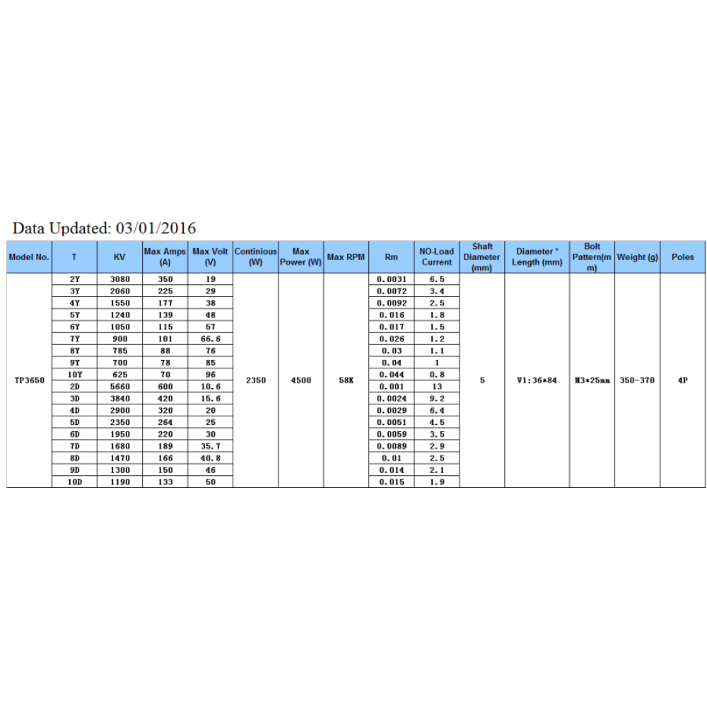 TP Power motors are made of the best materials that are available, and have high efficiencies (>90%) required for the most demanding applications.  Please refer to the popup chart for available models and detailed parameters. All of the motors under the "built your own" catalog are made on order, and the delivery time is about 4-6 weeks.