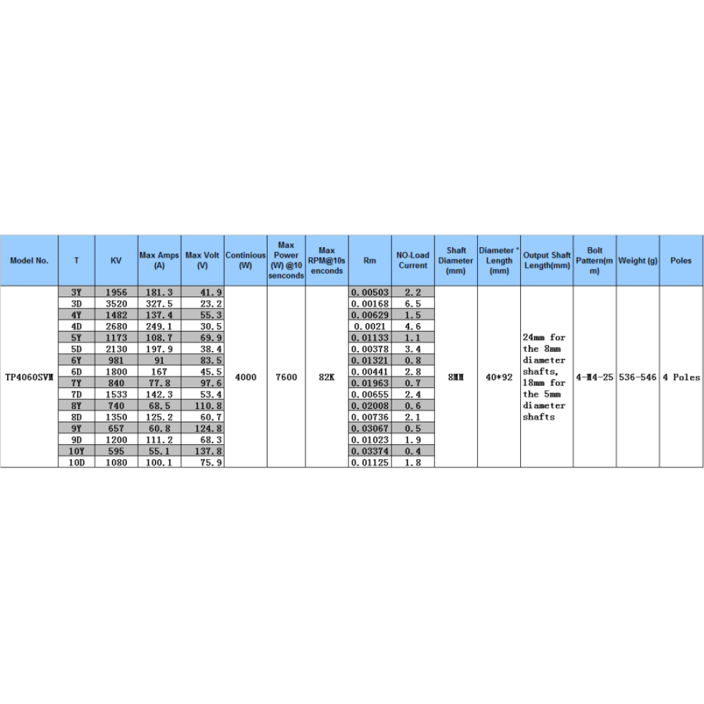 TP4060-SVM Series are the new competition 4-pole motor with more torque and power under high RPM design. The motors in the "build your own" catogory are made on order. Customers have flexible choice of building the motors according to your specific need. The ship time is about 4-6 weeks after the order is placed. Please plan ahead if you need to custom-build a motor.