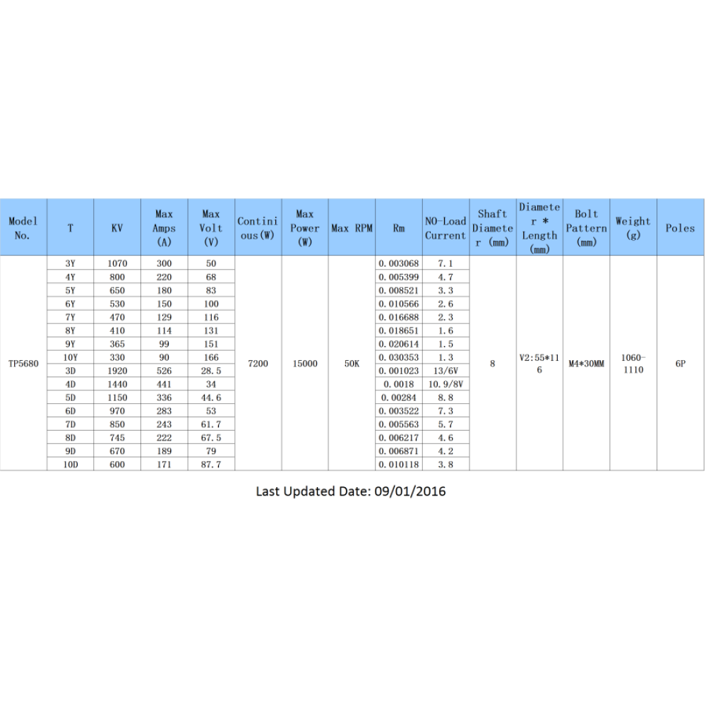 We are proud to release our new upgraded TP5680 motors in December 2015, which has max power of 15000W  and max RPM of 50K. TP Power motors are made of the best materials that are available, and have high efficiencies (>90%) required for the most demanding applications. The TP 5680 Series can be applied in Fun jets, Mono, Hydro, CAT, cars, etc. Please refer to the popup chart for available models and detailed parameters.